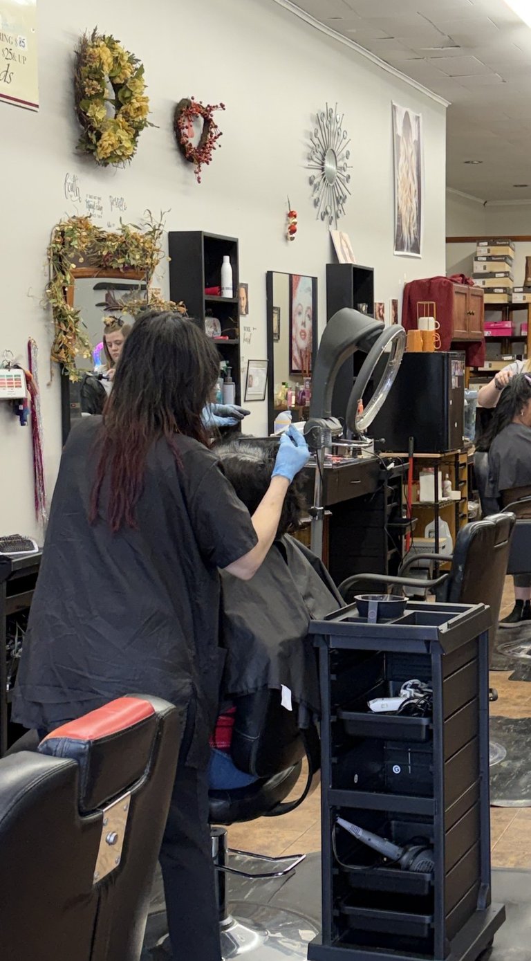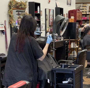 “Goldie has been my partner and my own hair stylist for about the last year now. She is very gentle with dyeing my roots which I appreciate as I have a really sensitive scalp, and is extremely attentive to what I'm actually describing for a cut. She is also the only person who has ever gotten my partners alternative haircut right which speaks for itself. The salon is clean and comfortable, and I will really miss her as our stylist since we are moving 🥲"